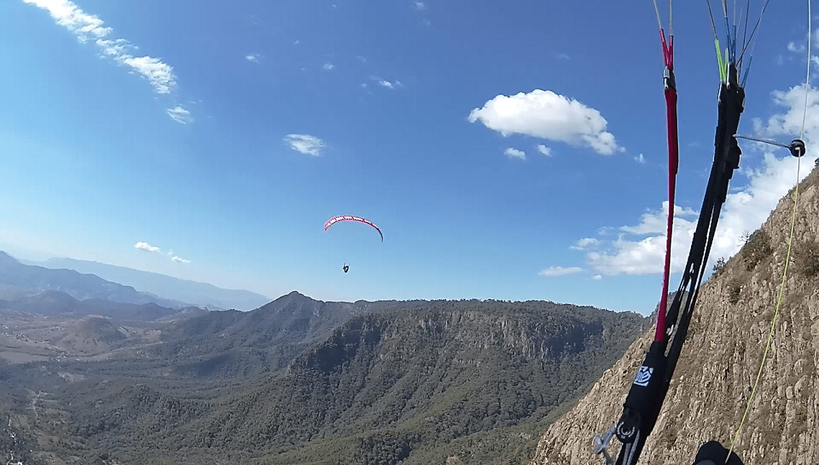 Arriving at El Penon, I begin to work in and then away from the face to locate the lift band. Denis Cortella’s suggestion on how to safely fly close into a ridge (weight shift away and apply inside brake to counter the turn) is going to see some application today.