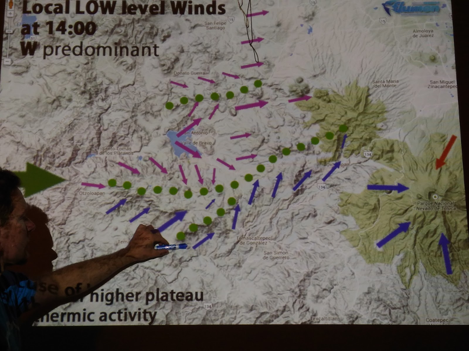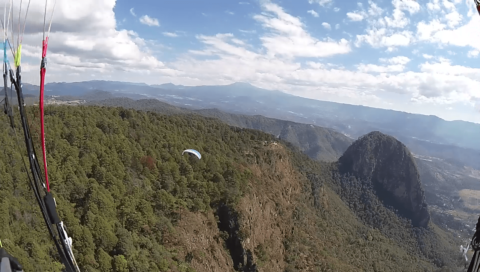 Our intrepid party of free fliers, having launched, transitioned to El Penon, and climbed the Wall are ready for the next piece of the Valle de Bravo paragliding puzzle – the Crazy Thermal Place. This south western edge of the mesa is an excellent collector of thermals from the valley below, thermals that mix and churn in the wind feeding the daily convergence. If a pilot can make it here and top out the oft time chaotic climb, XC options open up to the west and north. We will learn as the week goes on that Crazy Thermal is the first of the keys to flying XC in Valle.