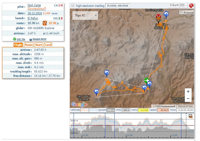 Launch->Diente (the s/w point at the end of the plateau upon which Crazy Thermal resides)->La Pila (on the flats to the s/w of Diente)-> Penitas (behind launch to the north east)->Sacamacate->Cerro Gordo->Valle.